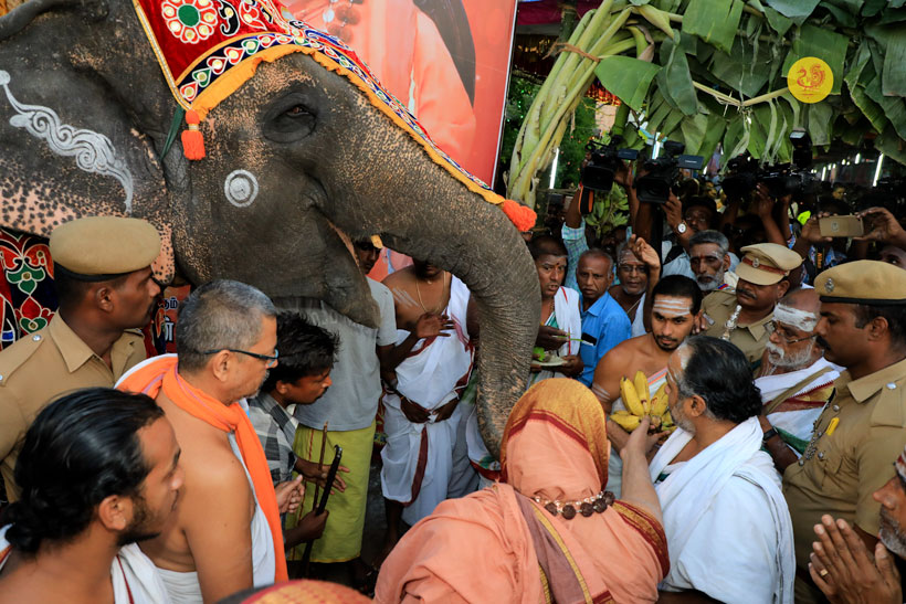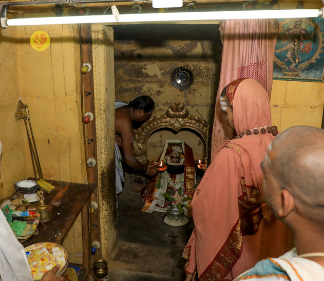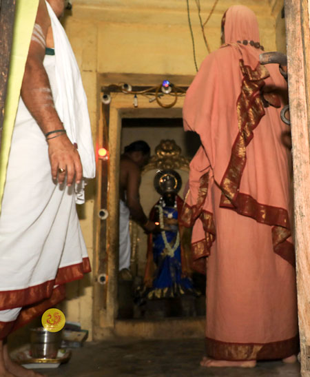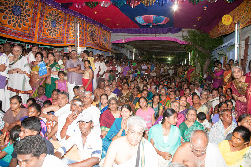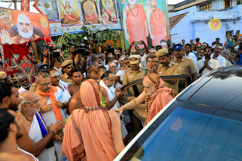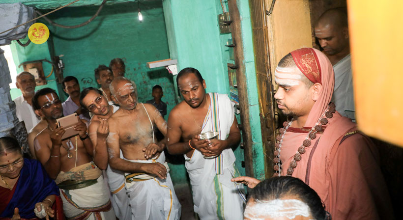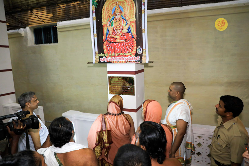 Prior to the arrival at Thenkarai, the Jagadgurus were received by the devotees at the neighbouring town of Sholavandan. Sri Sannidhanam had Darshan at the Janakai Mariamman temple.