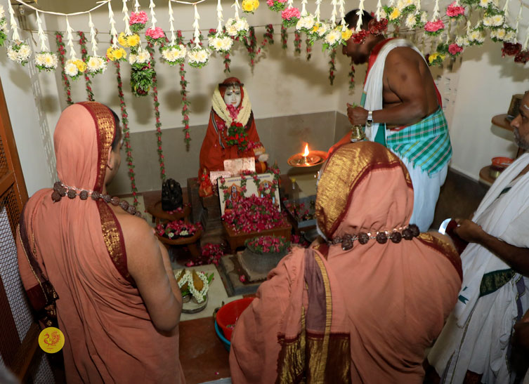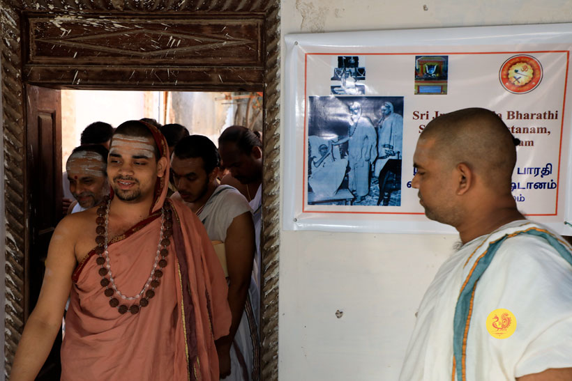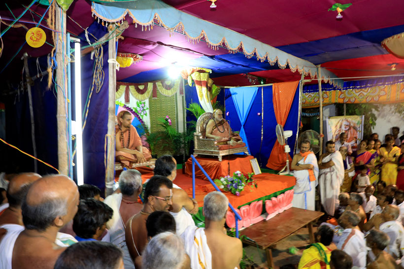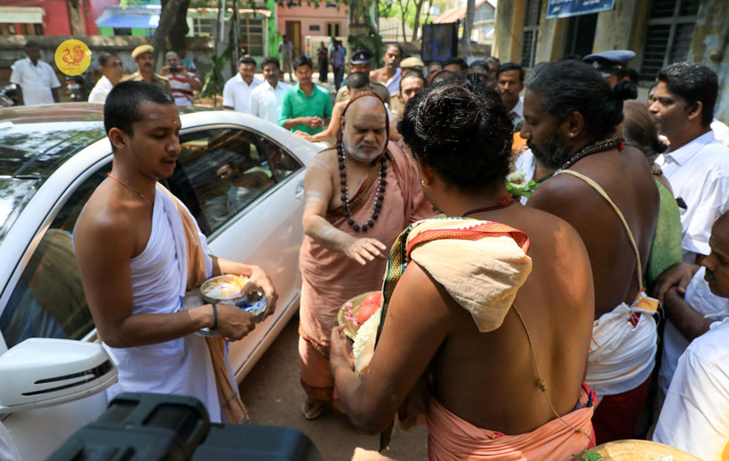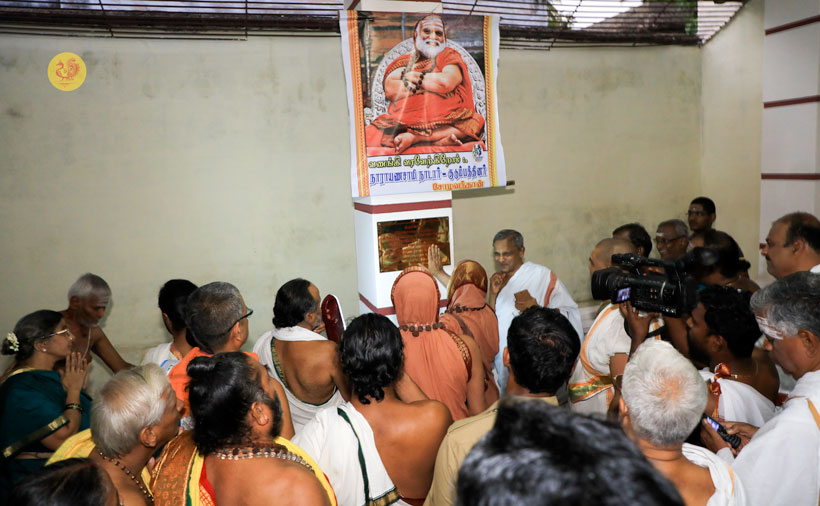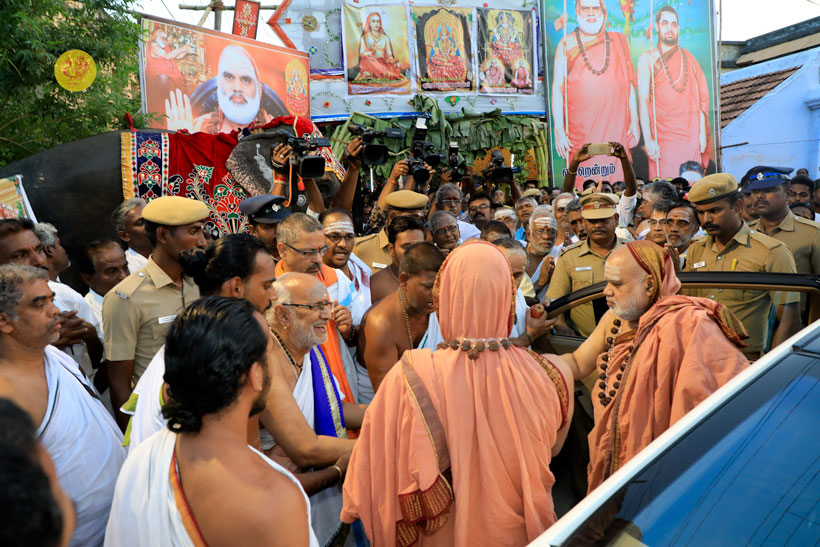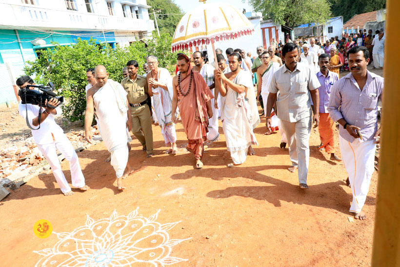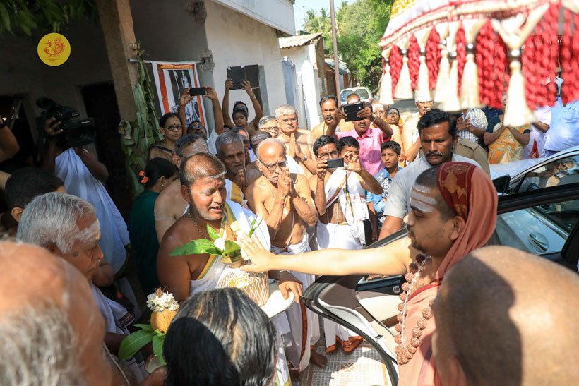Jagadguru Shankaracharya Sri Sri Bharati Tirtha Mahasannidhanam and Jagadguru Sri Sri Vidhushekhara Bharati Sannidhanam arrived at Thenkarai on March 25, 2017. A large number of devotees led by Sri V Vaidyanathan and Sri V Jayaraman (sons of Dharmatma Vaidyasubrahmanya Iyer) welcomed the Jagadgurus to the Thenkarai Agrahara.