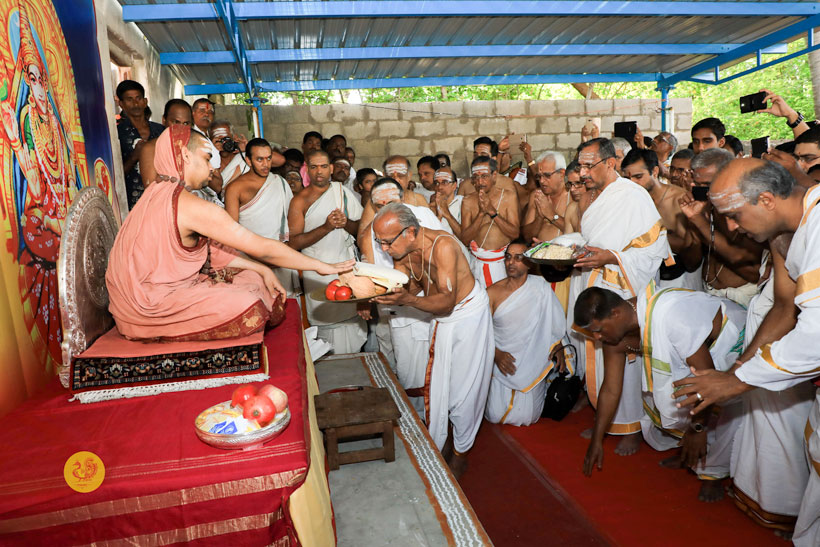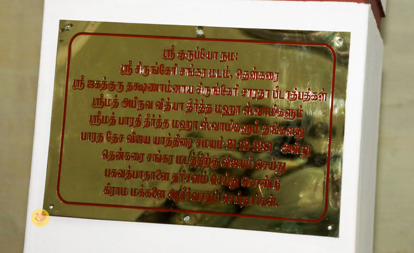 Later, at Thenkarai, Sri Mahasannidhanam and Sri Sannidhanam had Darshan at the Sri Moolanatha Swamy temple. The Jagadgurus then gave Darshan, distributed Tirtha Prasada and blessed the devotees with Ashir Mantrakshatas.