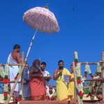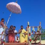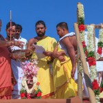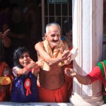 Jagadguru Shankaracharya Sri Sri Bharati Tirtha Mahaswamiji started from Palamadai in the evening of 1st May 2012 and arrived at Thoothukudi (Tuticorin) to a tumultuous reception. The devotees expressed their happiness and good fortune that the Jagadguru had graced Thoothukudi at the southern end of the nation to perform the Punah Pratishtha Kumbhabhisheka of the deities at the Math.