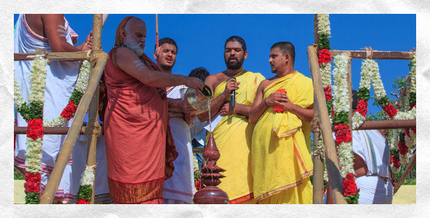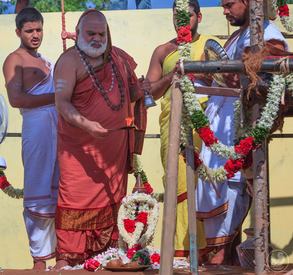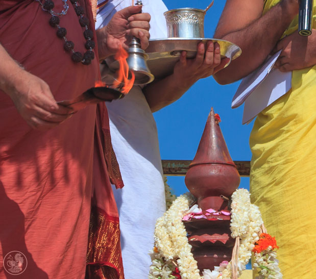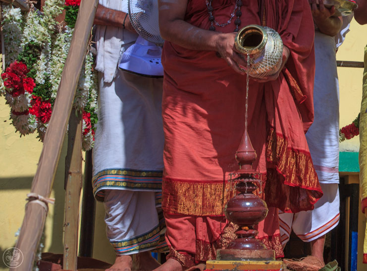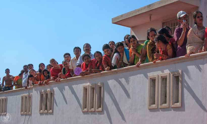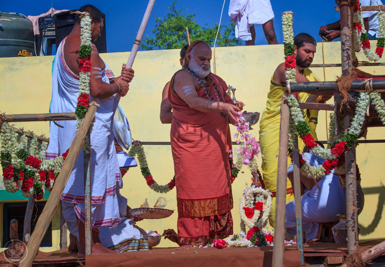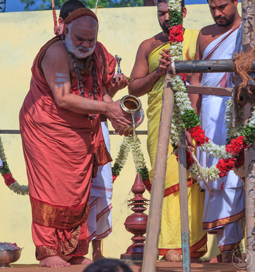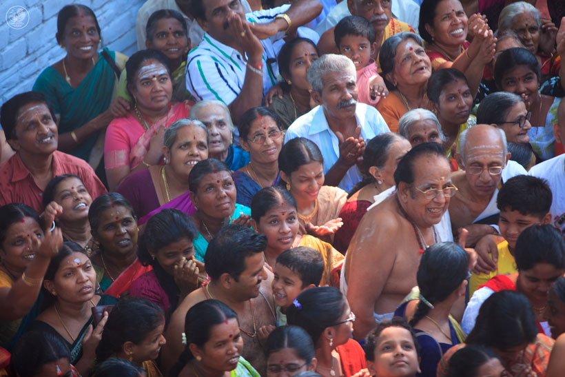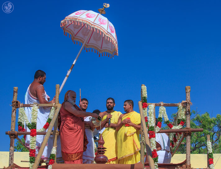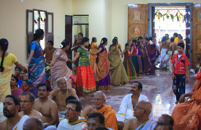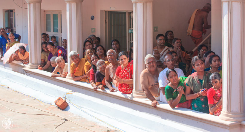 The devotees expressed great joy after the completion of the Shikhara Kalashabhisheka by the Jagadguru. It was during the 1924-1927 of the 34th Acharya of the Peetham, Jagadguru Sri Chandrashekhara Bharati Mahaswamiji that the Jagadguru had graced Thoothukudi and had given directions for consecrating the temple of Sri Bala Venkatachalapati. The temple was duly consecrated in 1928. The 35th Acharya of the Peetham, Jagadguru had performed the Kumbhabhisheka in 1957 and the current Acharya, Jagadguru Shankaracharya Sri Sri Bharati Tirtha Mahaswamiji had performed the Punah Prathishta Kumbhabhisheka during His Vijaya Yatra in 1987.