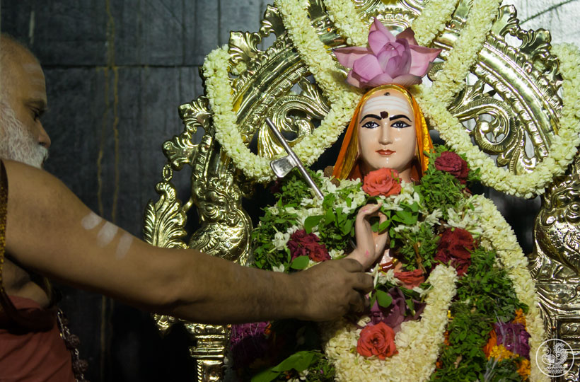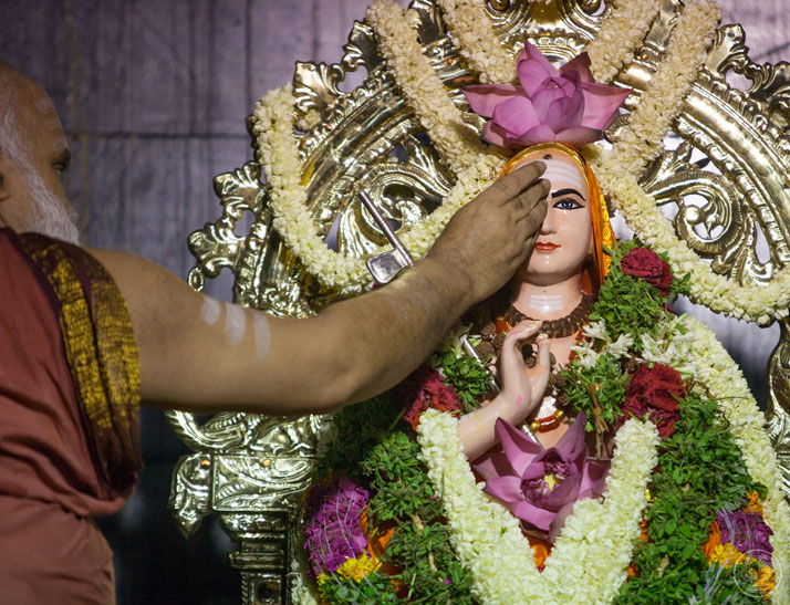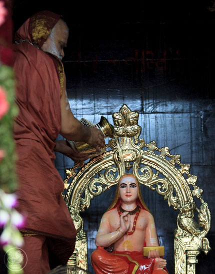 From 7:30 am to 9:30 am on the morning of 3rd May 2012, the Jagadguru performed the Punah Pratishtha Kumbhabhisheka of Lord Bala Venkatachalapati, Goddess Sharada and Sri Adi Shankaracharya at the Sringeri Shankara Math, Thoothukudi.
