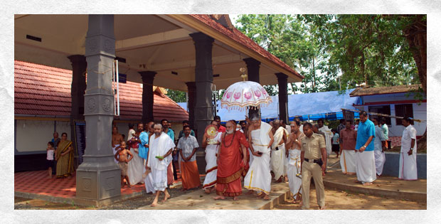 On 6th April, the Jagadguru visited a Shiva temple near the Bhavan in Thrissur and had Darshan. In the evening, the Jagadguru graced the Jyotisha Pathashala at Kodakara and travelled towards Kalady.