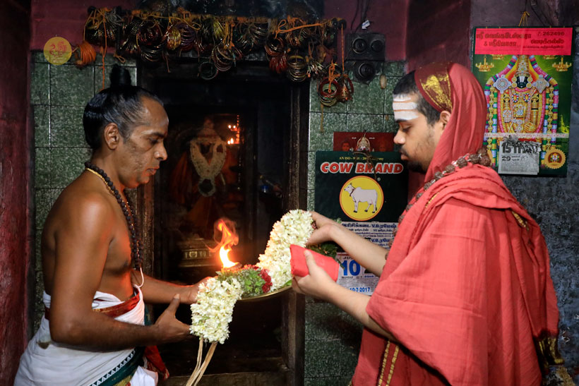 Later the Ubhaya Jagadgurus gave Darshan to devotees at Vathalagundu. Devotees offered Bhiksha Vandanam and performed Pada Puja. The Jagadguru started from Vathalagundu in the evening towards Kodaikanal.