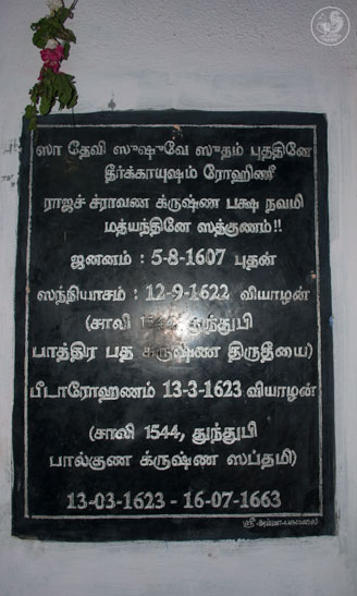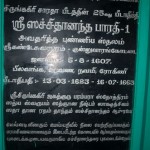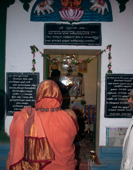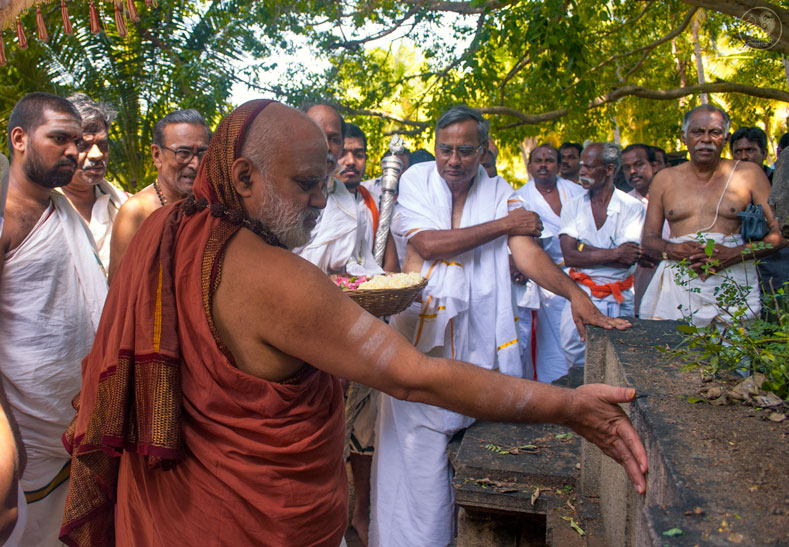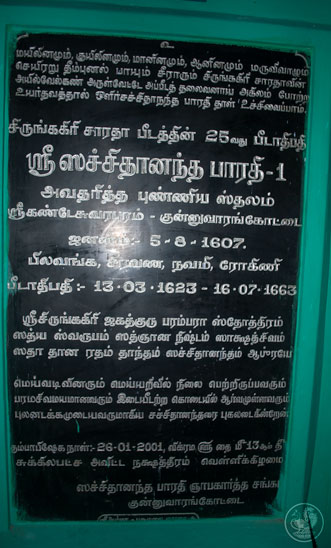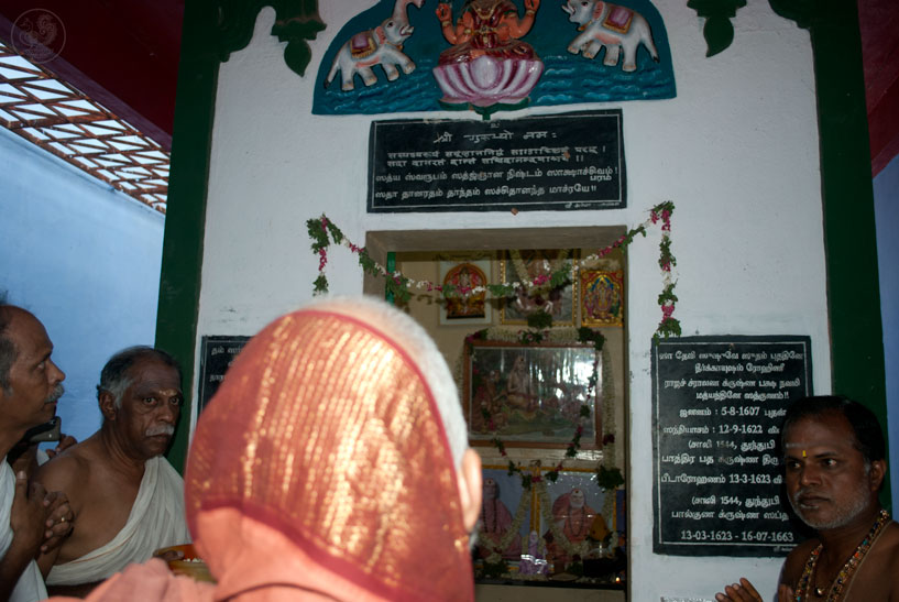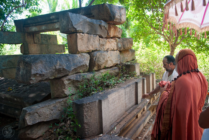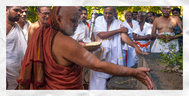 Later, the Jagadguru visited the ruins of the ancient Agrahara at Kunnuvaarankottai located a few kilometres away. According to the local residents, there was a temple here surrounded by about 300 houses and one of them was the Poorvashrama home of the 25th Jagadguru of Sringeri. Today, only the ruins of the temple remain. The Jagadguru visited the site and directed that the inscriptions on the stone structures of the temple be deciphered.