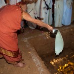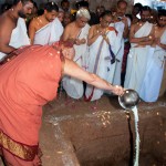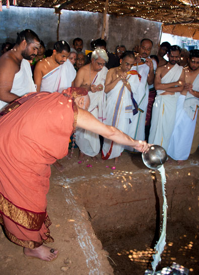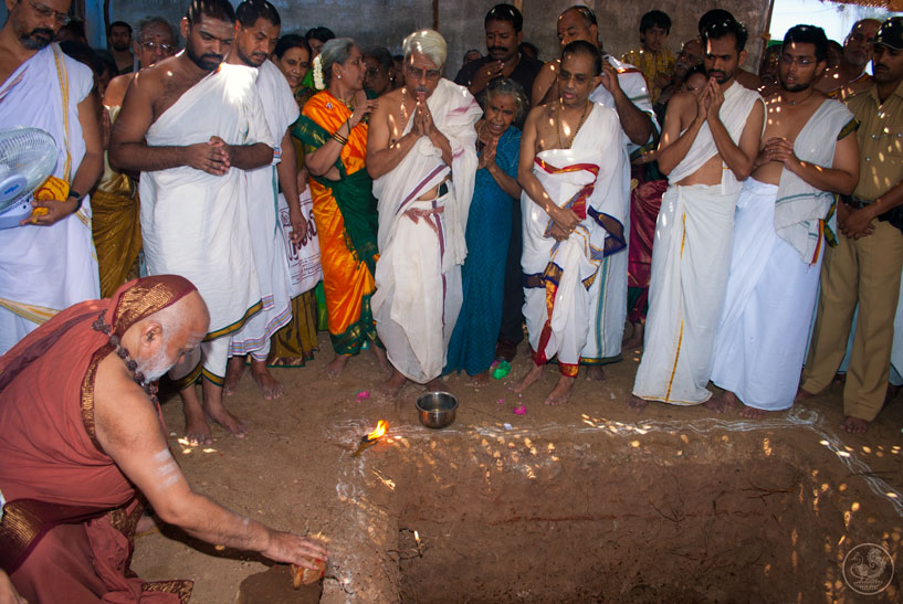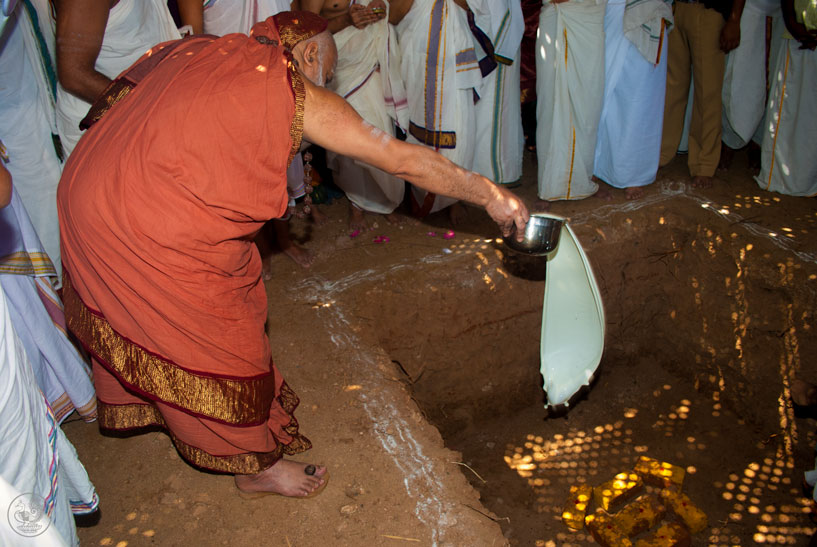 The Jagadguru then returned to Vathalagundu and laid the foundation stone for Sringeri Shankara Math. Devotees had Darshan of the Jagadguru, offered Bhiksha Vandanam, and performed Pada Puja. The Jagadguru started from Vathalagundu in the evening towards Melmangalam.